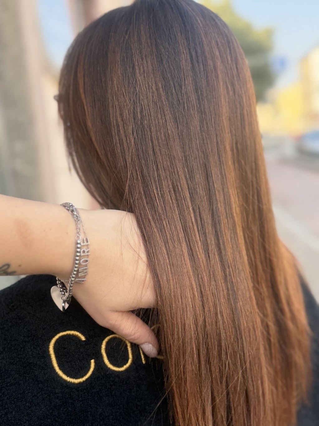 Trattamenti mirati (cheratina, oli, lucidante) per esaltare la riflettanza e la salute del capello.