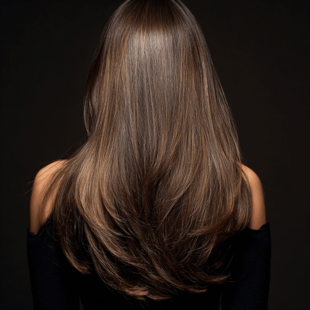 Basi castane scure arricchite da riflessi caldi come caramello, marron glacè, spesso realizzati con tecniche mirate.